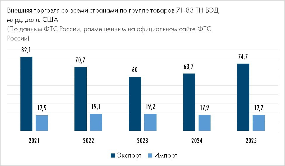 Федеральная таможенная служба (ФТС) России опубликовала статистические данные о стоимостных объемах и структуре экспорта и импорта товаров по результатам 2025 г. Экспортные поставки металлов и изделий из них (группы 71-83 ТН ВЭД ЕАЭС, куда входит продукция черной и цветной металлургии, а также изделия из них) по итогам прошедшего года составили 74,7 млрд долл., что на 17,4% больше, чем показатель 2024 г. (63,7 млрд долл.)... 📣 Комментарий экспертов ЦНИИчермет им. И.П. Бардина: Рост экспортных поставок металлов и изделий из них до 74,7 млрд долл. США по итогам 2025 г. отражает сразу несколько факторов. Во-первых, отрасль адаптировалась к новым условиям внешней торговли – произошла переориентация экспортных потоков в сторону стран Азии, Ближнего Востока и СНГ. Во-вторых, на мировом рынке в течение прошедшего года наблюдалась благоприятная ценовая конъюнктура... 👉 Подробнее - в ВК-канале ЧМ