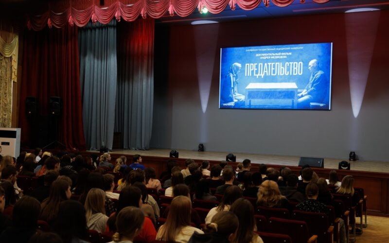 Фильм Андрея Медведева заставил студентов задуматься о будущем страны В стенах Смоленского государственного медицинского университета состоялся специальный просмотр документального фильма заслуженного журналиста РФ Андрея Медведева «Предательство». Показ, организованный администрацией вуза совместно с Министерством здравоохранения России, вызвал широкий резонанс среди молодёжи региона. Проректор по стратегическому развитию СГМУ Минздрава России Анна Кожурина подчеркнула важность подобного мероприятия: «Мы обязаны говорить открыто обо всём, что угрожает нашему будущему, чтобы уберечь молодое поколение от ошибок и трагедий». Медведев в своей работе рассказывает о новых формах угрозы национальной безопасности, подчеркивая особую роль социальных сетей и мессенджеров в процессе привлечения молодых россиян к противоправной деятельности. По мнению автора картины, профилактика терроризма должна стать задачей каждого гражданина: Враг развернул на нашей территории партизанскую войну. Причем, де