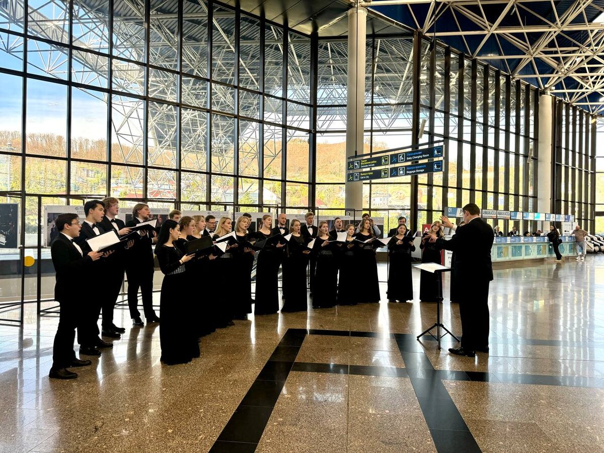 Сегодня в аэропорту Сочи звучала потрясающая живая музыка ✨ 🎵Прямо в зоне регистрации внутренних рейсов выступил Ансамбль современной хоровой музыки «Altro coro». Художественный руководитель - Александр Рыжинский. Мероприятие было приурочено к открытию ХIХ Зимнего международного фестиваля искусств в Сочи под руководством Юрия Башмета. Идеальный старт для любого путешествия, согласны? Ставьте ❤, если любите такие сюрпризы!