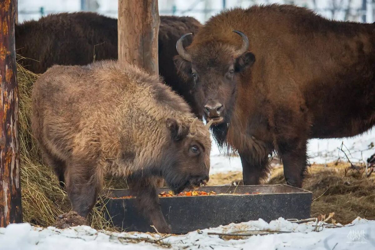 Великаны из Синеокой прекрасно прижились в природном парке «Мурадымовское ущелье» и ждут нового пополнения К 2030 году в заповеднике, по подсчетам специалистов, будут жить-поживать, да зубрят наживать пятьдесят парнокопытных красавцев Фото: Официальный телеграм-канал Главы Республики Башкортостан Девять новых зубров скоро прибудут в Башкортостан из Беларуси. Именно столько – девять меланхоличных красавцев – впервые появились здесь еще в мае 2023 года. Их разместили в природном парке «Мурадымовское ущелье», который входит в состав биосферного резервата «Башкирский Урал». Почему именно здесь? Это оптимальное место с прекрасными условиями для воспроизводства мохнатых гигантов: переходная зона между различными типами ландшафта. Она обеспечивает животным разнообразие пищи и мест обитания. Однако, полной уверенности, что они приживутся, не было. А потому, начиная с доставки, с них только что пылинки не сдували. Передвигались они до места в специальных ящиках с поилкой, кормушкой. Большегрузн