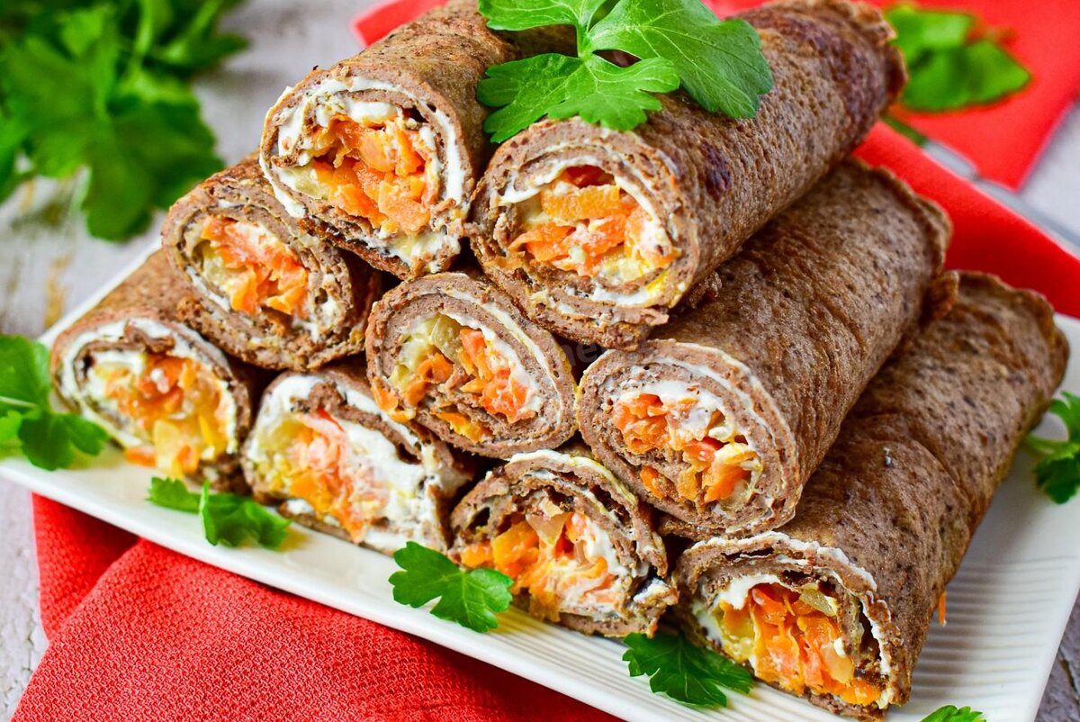 Хотите удивить гостей необычной закуской? Попробуйте блины с творожным сыром и корейской морковкой — сочетание нежной текстуры и пикантного вкуса точно запомнится всем!