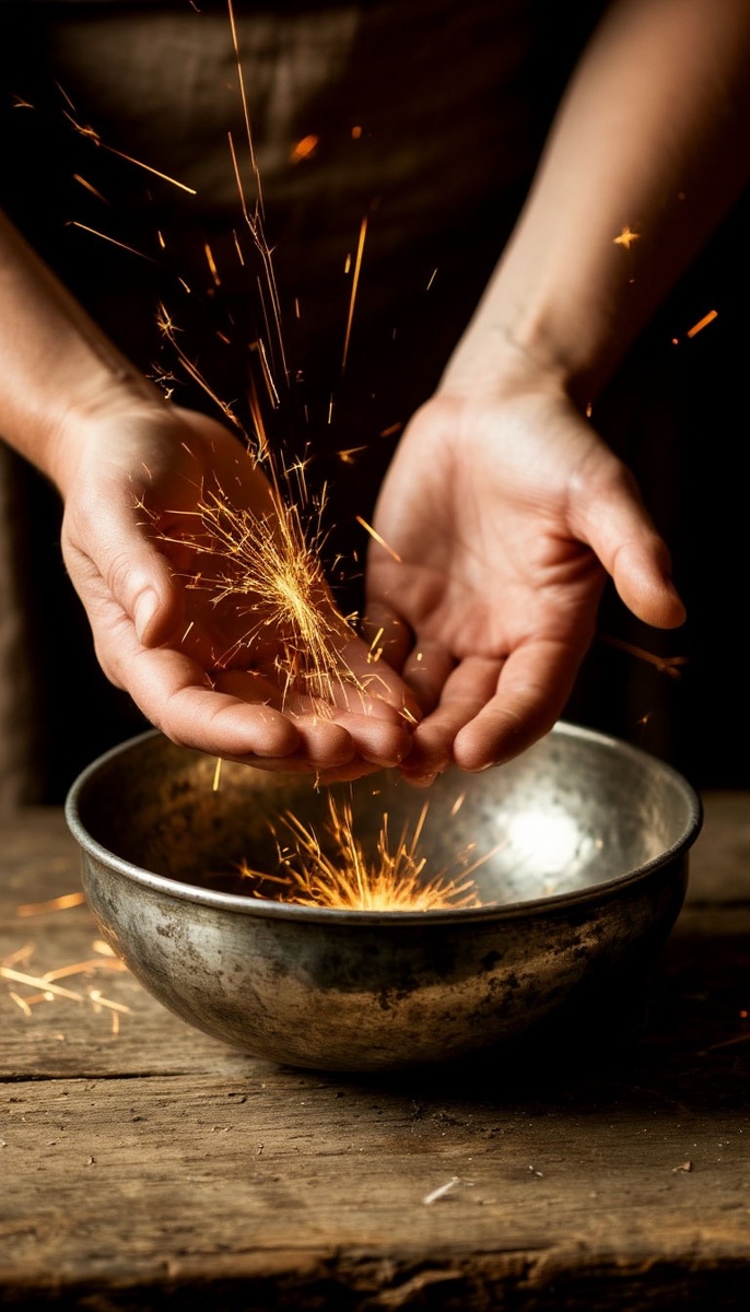 На четвёртый день утром я увидела её сидящей на табуретке и чистящей картошку. Солнце только встало, и длинные утренние лучи ворвались в кухню, разрезав полумрак на золотые полосы. Луч упал прямо на её руки, на старую миску, на серебристую кожуру, спиралью свисающую вниз. В пыльном воздухе танцевали искры.