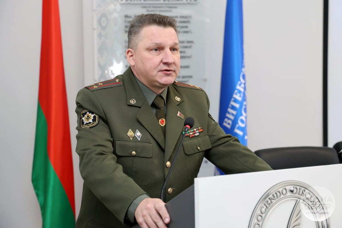 М. Машерова состоялся Единый день информирования на тему «Оборонительная мощь белорусской армии и патриотизм в современных условиях». Перед трудовым коллективом выступил военный комиссар Витебской области полковник Кунаховец Сергей Анатольевич, который осветил ключевые аспекты обороноспособности Беларуси, обозначил главные приоритеты Вооруженных Сил Республики Беларусь, рассказал о том, насколько важно сегодня формировать гражданскую позицию у подрастающего поколения и какие условия уже для этого созданы. Пользуясь случаем, военный комиссар также поздравил Машеровцев с наступающим Днем защитников Отечества и Вооруженных Сил Республики Беларусь и присоединился к написанию диктанта на белорусском языке в рамках праздничной акции ко Дню родного языка, организованной в университете. 🔸 Больше фотографий – в группе «Медиацентр ВГУ» ВКонтакте #новости