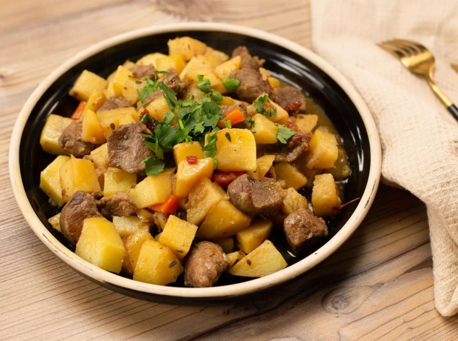Когда время поджимает, а домашние уже заглядывают на кухню в ожидании ужина, на помощь приходит классика. Сегодня предлагаем приготовить жаркое на сковороде. Свинина кусочками, картофель ломтиками, сладкий перец для сочности и лук до золотистости — никаких сложных манипуляций. Просто нарезали, обжарили и потушили в одной посуде.