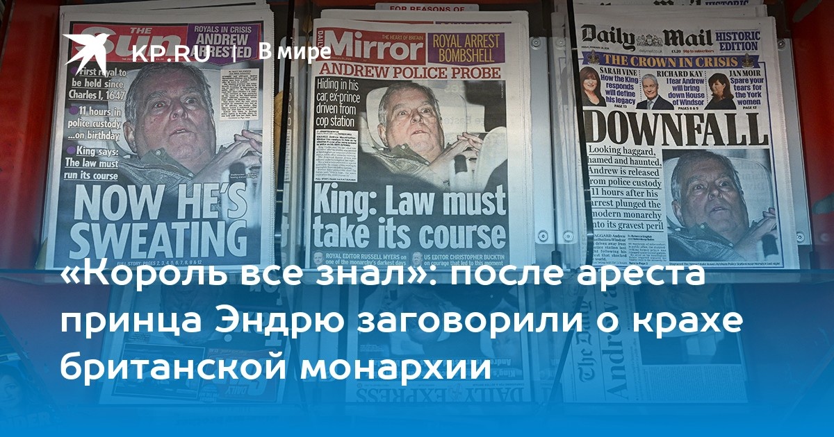 Королевский брат в наручниках: арест Эндрю как предвестник краха британской монархии FRANCE24 vs KP про арест принца Эндрю и связи с Эпштейном FRANCE24 сообщает, что бывшего принца Эндрю арестовали и несколько часов держали в участке по подозрению в должностных преступлениях, связанных с его связями с Джеффри Эпштейном. «Арест представляет собой исторический удар по королевской семье», — пишет источник, называя это «экстраординарным шагом» в стране, где власти раньше стремились оградить монархов от скандалов. По сути, акцент на институциональном провале: система, которая веками покрывала своих, дала трещину. А вот KP уже вовсю разгоняет тему краха. Да, арест, да, обыски в поместьях, но главное — «королевская семья годами закрывала глаза на беспредел Эндрю и отмазывала его от правосудия». Источник утверждает, что «королевский брат сливал ему служебную информацию», когда был спецпредставителем, и что полиция допросит бывших охранников, знавших о поездках на остров Эпштейна. Итог: «Это бу