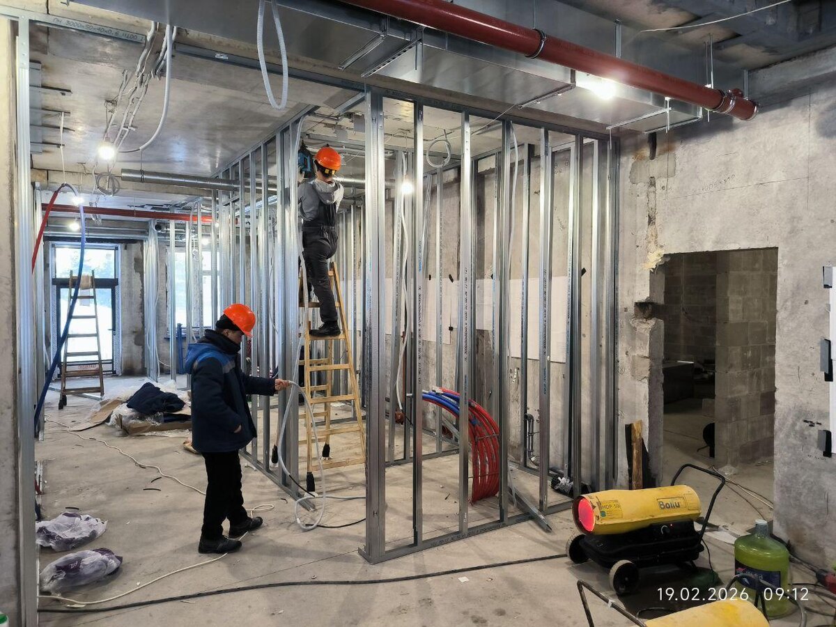 На строящейся подстанции скорой медицинской помощи в Поречье перешли к монтажу внутренних перегородок