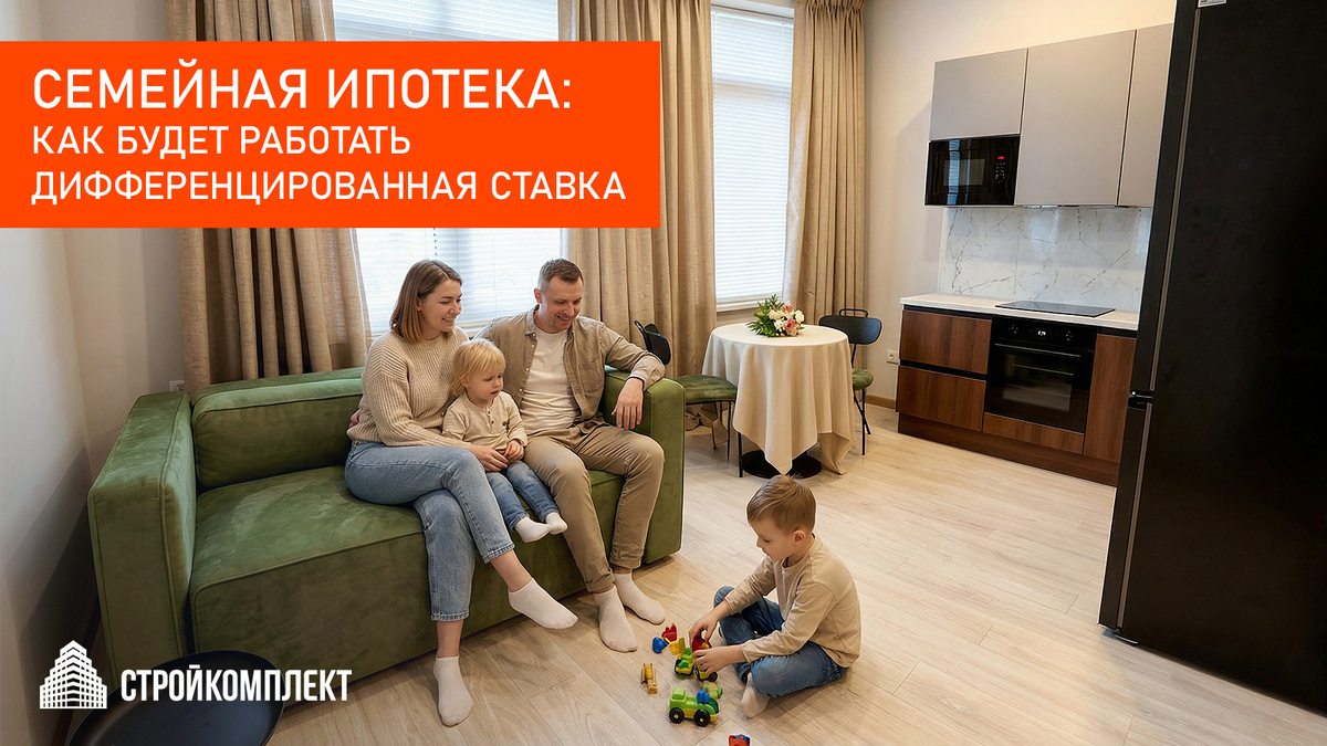 Семейная ипотека уже несколько лет остаётся одной из самых востребованных программ на рынке. Для многих семей она стала единственным реальным способом купить квартиру — особенно на фоне высокой ключевой ставки и дорогих рыночных кредитов. С 1 февраля 2026 года правила изменились, и всё чаще обсуждается переход к дифференцированной ставке по программе «Семейная ипотека». Предполагается, что процентная ставка будет зависеть от числа детей в семье. Президент России Владимир Путин поручил правительству, Банку России и институту развития «ДОМ.РФ» до 1 июня разработать соответствующие предложения, а также представить механизм, который позволит семьям переходить между государственными программами по мере увеличения числа детей. Разбираемся, что это значит на практике. Сейчас семейная ипотека работает по простому принципу: единая ставка 6%, и большинство семей получают одинаковые условия — независимо от того, один ребёнок до 7 лет в семье или трое. Разные источники называют примерно такие уро
