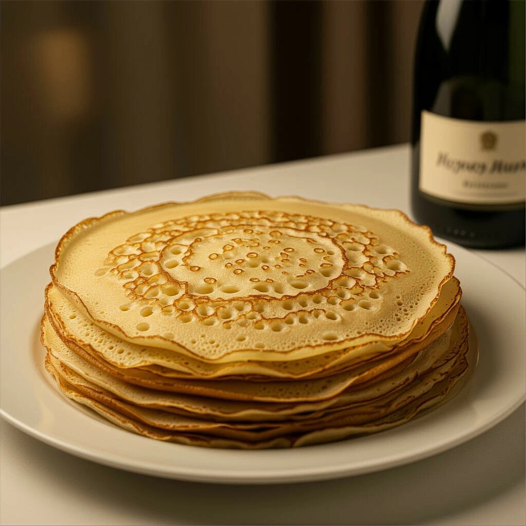Блины с шампанским получаются невероятно нежными, с лёгкой игристой ноткой и тонким ароматом праздника. Приготовим?