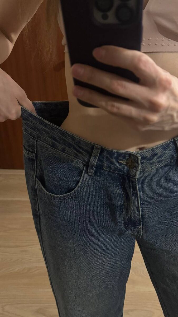 фигуры😈 Но потом в течении года было много переживаний, стресса, а при стрессе я никогда не могу есть. Плюс еще занималась здоровьем и проходила чистки. В итоге похудела в сумме на 8-10 кг Вся одежда стала большая, вот на фото мои любимые джинсы( Мне не нравится быть худой, очень хочу вернуть свою форму назад!!!! Начало положено. Наконец-то вернулась к тренировкам и очень этому рада, не смотря на адскую мышечную боль)