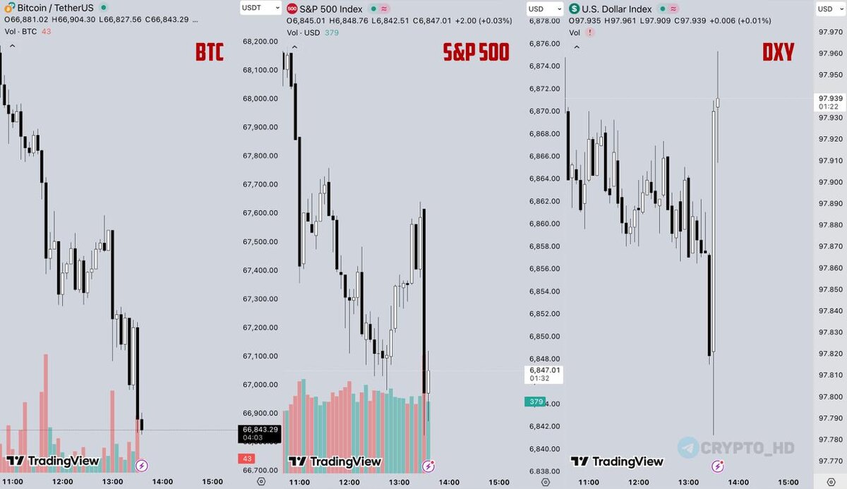 π³ BTC, S&P 500 ΠΈ DXY β ΡΠ΅Π°ΠΊΡΠΈΡ Π½Π° Π΄Π°Π½Π½ΡΠ΅ ΠΏΠΎ ΠΈΠ½ΡΠ»ΡΡΠΈΠΈ Π‘Π¨Π!