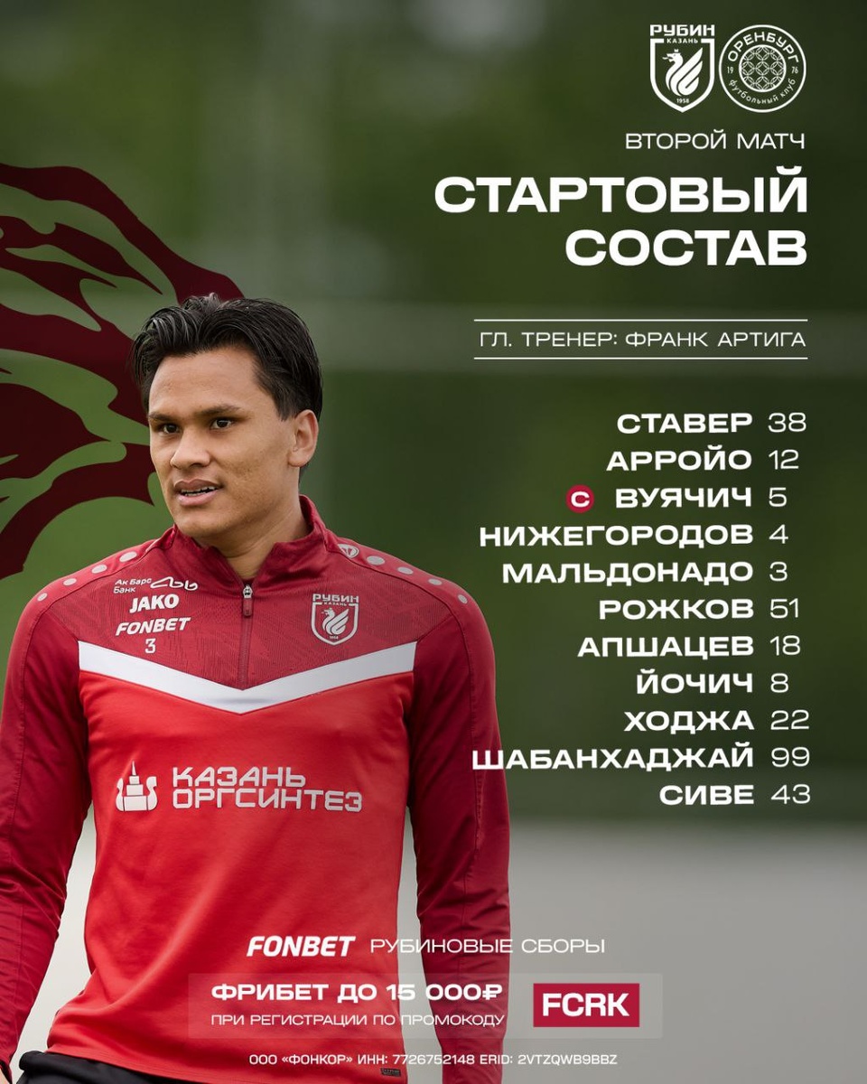 Стартовый состав на второй матч с Оренбургом. Это уже куда ближе к основе.