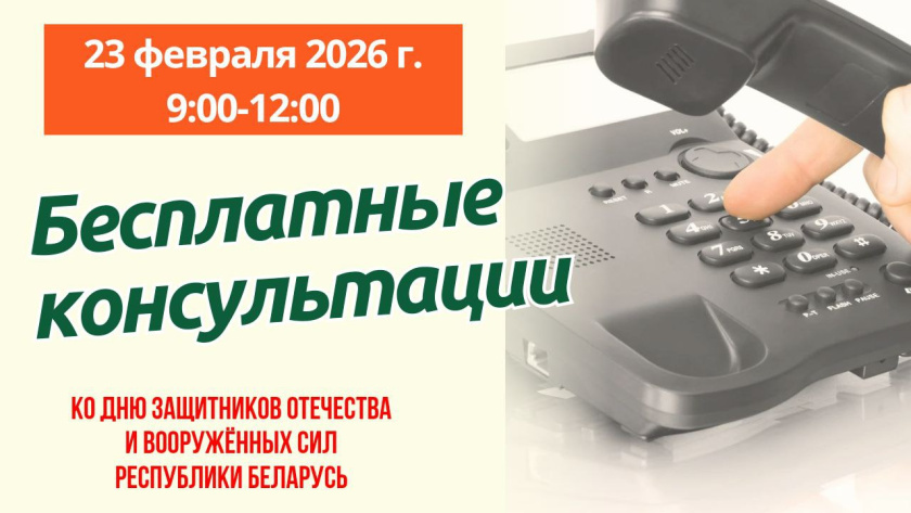 Акция приурочена ко Дню защитников Отечества и Вооруженных Сил Республики Беларусь. С 9:00 до 12:00 можно будет получить консультации по вопросам: - деятельности органов загса, тел. 8 (0232) 35 71 51; - проставления апостиля на документах; осуществления риэлтерской деятельности, тел. 8 (0232) 51 02 76; - регистрации (ликвидации) субъектов хозяйствования, тел 8 (0232) 51 02 78; - принудительного исполнения исполнительных документов о взыскании долгов, алиментов, средств на содержание супруга и др., тел. 8 (0232) 51 03 40; 8 (0232) 22 43 03.