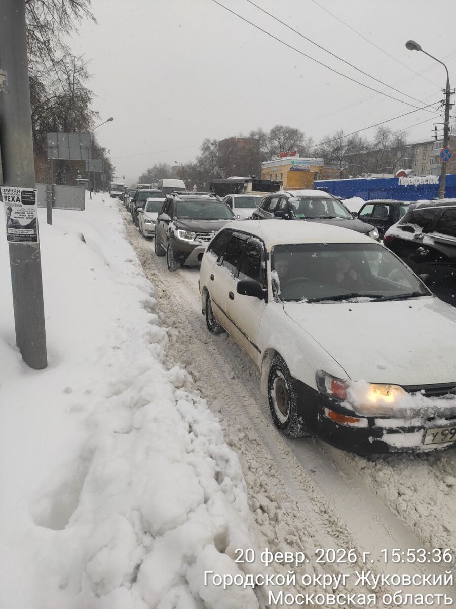 Центральная улица Гагарина стоит на Москву, авария, снег не чищен, дорога вся в буграх, маршрутки идут переполненные, опасность