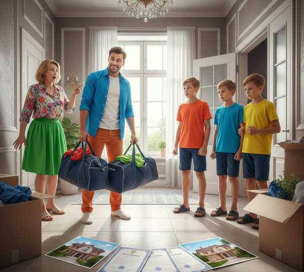 Денис вернулся вечером в воскресенье. Я молча встретила его в узком коридоре. У моих ног стояли две объемные спортивные сумки с его вещами — теми самыми заштопанными рубашками и потертыми джинсами. На кухонном столе ровным веером были разложены копии договоров.