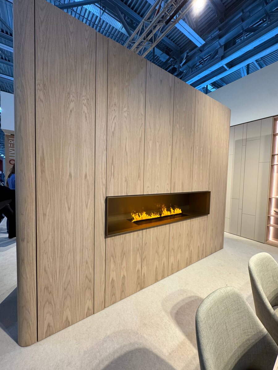 Шпонированый шкаф и в него интегрирован биокамин.