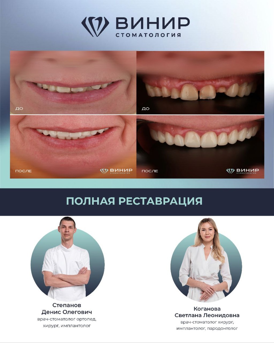 🌟 🔜 Полная реставрация зубов — это настоящее искусство, которое требует командной работы. 🔵На первом этапе врач-стоматолог терапевт, Виктория Александровна Уланова, провела терапевтическую подготовку полости рта. Этот этап является важнейшим фундаментом для дальнейшего восстановления эстетики и функциональности зубочелюстной системы 🔵Далее врач-стоматолог ортопед, Денис Олегович Степанов, разработал план лечения и провел протезирование, учитывая индивидуальные особенности нашего пациента 🔵В собственной зуботехнической лаборатории были изготовлены красивые, уникальные реставрации Никакого металла — только естественная красота и прочность! Запишитесь на прием через Telegram или Max ____ 📍Саратов, ул. Соколовая 10/16 С уважением и заботой, ВИНИР Стоматология грамотного выбора