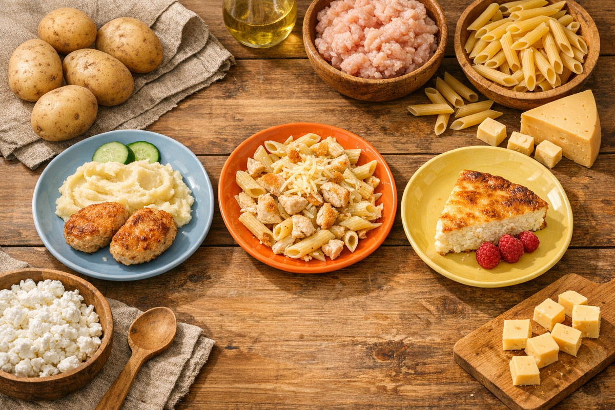 С детьми обычно работает простая логика: еда должна быть мягкой, не слишком острой, понятной по вкусу и виду. Поэтому здесь без “сложных соусов”, без горы специй и без спорных текстур. Все ужины из обычных продуктов, которые легко найти в любом магазине.