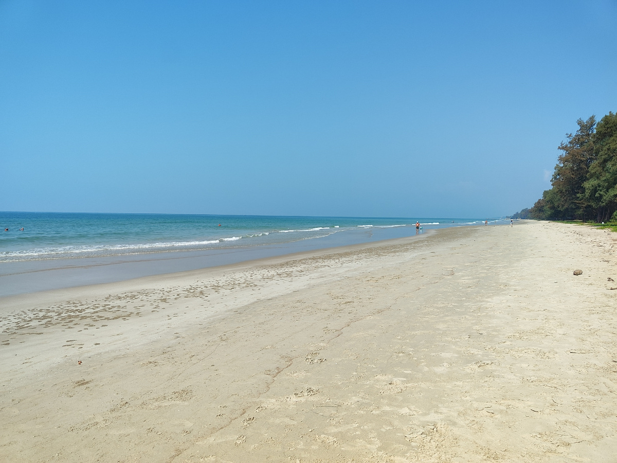 Но и ветра сегодня совсем нет, а потому ощущение, что на улице жарче. На пляже сегодня оживленно по меркам Районга. И в воде головы виднеются, и по пляжу люди гуляют.