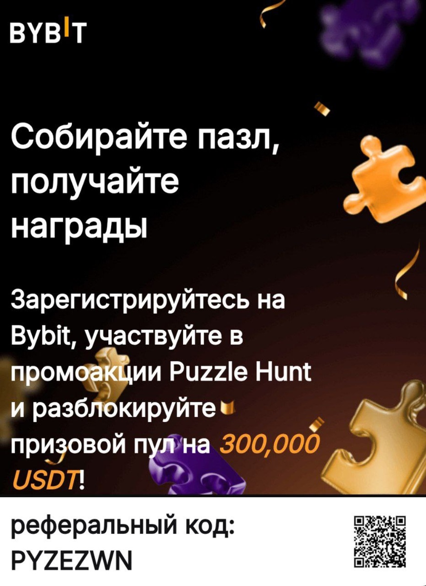 Зарегистрируйтесь на Bybit, участвуйте в промоакции Puzzle Hunt и разблокируйте призовой пул на 300000 USDT! Перейдите по ссылке