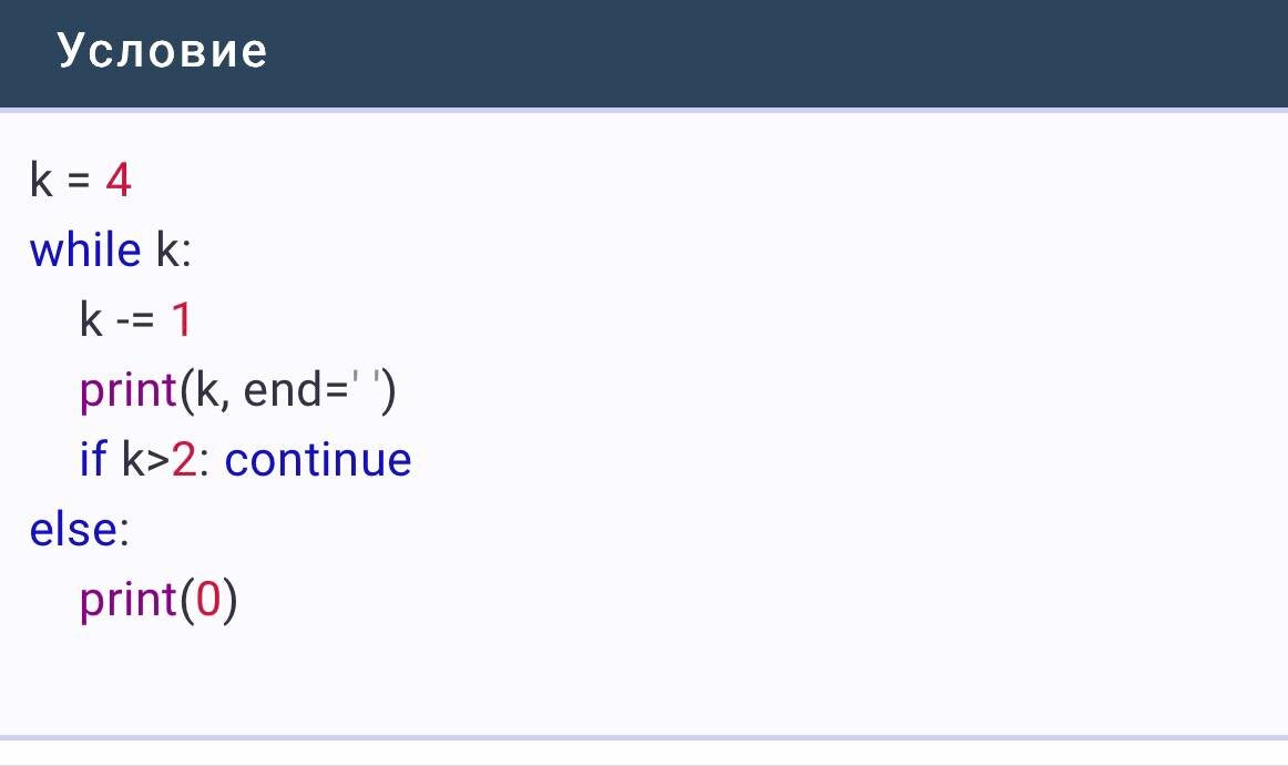 Что будет выведено на экран в результате выполнения кода условия?