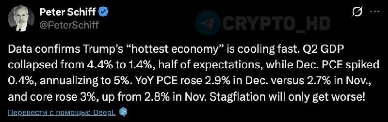 🤔 Питер Шифф: Стагфляция экономики США будет только усиливаться