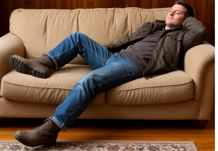 Светлана Петровна отрыла входную дверь и услышала в квартире музыку. Она прошла в гостиную и увидела своего сорокалетнего сына , лежащего на ее новом диване прямо в верхней одежде и обуви.