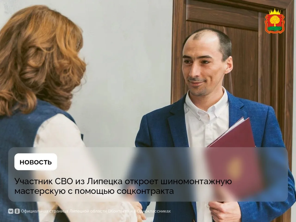 Шиномонтаж по социальному контракту открыл в Липецке участник СВО Андрей Самарин. Это первый в регионе контракт на предпринимательскую деятельность, открытый на особых условиях для ветеранов спецоперации. До войны Андрей получил образование механика. Когда началась спецоперация, ушел защищать Родину, принимал участие боях за Бахмут, Соледар, освобождении Курской области. После трех лет на фронте Андрей Самарин вернулся домой в 2025 году и вновь занялся любимым делом — машинами. Как сообщили в правительстве региона, Андрей Самарин заключил соцконтракт на предпринимательскую деятельность и получил 350 тысяч рублей господдержки. Он планирует обустроить в своем гараже шиномонтажную мастерскую, а на полученные по соцконтракту деньги закупит необходимое оборудование. Как уточнили в правительстве региона, соцконтракт на предпринимательскую деятельность одобряют без учёта дохода семьи. Получить его могут участники СВО после демобилизации, а также супруги ветеранов СВО, признанных инвалидами I