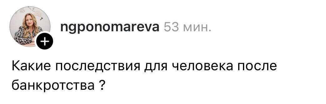 : ▪️3 года вы не можете быть учредителем или директором компании. ▪️10 лет не можете быть учредителем или директором кредитной организации (банк, МФО и т.д.) ▪️5 лет банкротство отображается в кредитной истории. @finhackru