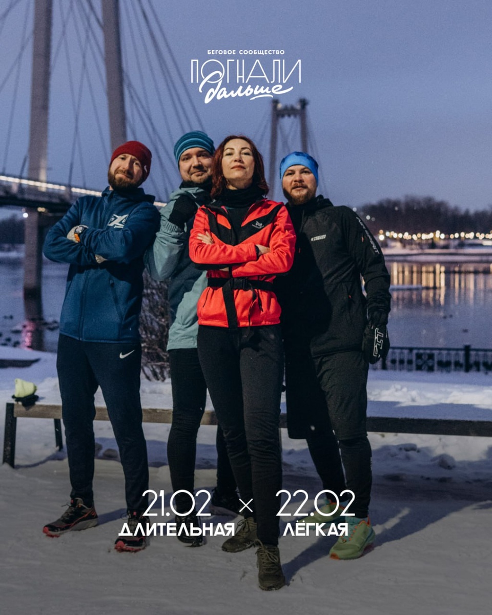 Но на всякий случай... 21.02 в 8:00 встречаемся у Культуры спорта, бежим спокойно километров 17-20 и возвращаемся на точку старта. Важный момент! Не обязательно бежать с нами всю дистанцию. Можно свернуть к финишу чуть раньше, если чувствуешь, что для тебя больше будет перебором. 22.02 в 7:30 встречаемся под Коммунальным мостом на центральной набережной. Бежим изи 5-6 км. И финалимся совместным завтраком в Культуре спорта. Побегали. Покушали. Погнали Дальше. P.S. Отмечайтесь в комментах, чтобы понимать, кого куда ждать.