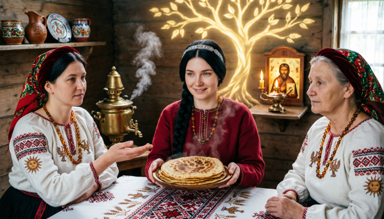 «Золовкины посиделки» — это преимущественно женский день, центр которого — не просто родственные визиты, а сложный ритуал укрепления связей внутри большой семьи, особенно между женщинами, вошедшими в нее через брак . Это день, когда эзотерика родственных отношений проявляется в самых простых и глубоких вещах: в блинах, испеченных с любовью, в подарках, переданных от сердца к сердцу, в разговорах, соединяющих поколения.