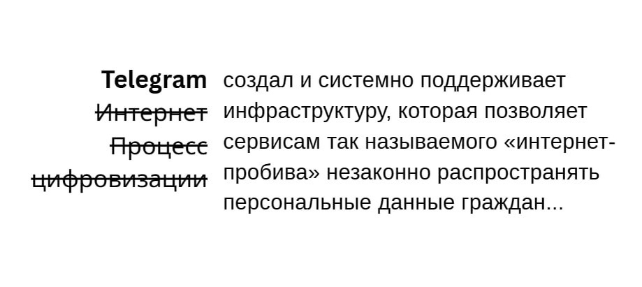 Telegram создал и системно поддерживает инфраструктуру, которая позволяет сервисам так называемого «интернет-пробива» незаконно