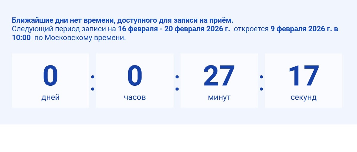 В 2026 году вводятся новые правила постановки на учёт кандидатов в опекуны и усыновители. Сегодня уже практически никуда нельзя стать на учёт вне своего региона - нас отправляют на госуслуги, а там ещё не всё работает :) Поэтому единственный адекватный вариант на данный момент получить информацию о детях - это посещение Федерального банка данных в Москве (далее ФБД). А туда надо записаться...об этом и пойдёт речь в этой статье. Запись в ФБД производится на сайте усыновите.рф Внизу страницы мы видим отсчёт времени до открытия записи. Запись открывается в 10:00 по мск времени и длится 5 минут. И это не шутка! В 10:05 вы уже не запишитесь - окон не будет! Записываемся мы в понедельник на неделю вперёд, т.е. в этот понедельник можно записаться самое раннее - на следующий понедельник. Ровно в 10:00 обновляем страницу сайта и видим свободное время для записи, выбираем день и время, нажимаем кнопку "Забронировать" и начинаем заполнять. Первое, что вводим - ФИО кандидатов. Если у вас заключени