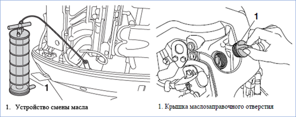 Компания YAMAHA (как и другие производители) обозначает все детали, которые связаны с моторным маслом, особым цветом. По этой причине, щуп и пробка заливной горловины мотора обозначены ярко-желтым цветом.