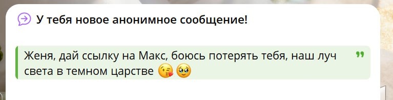 Я пользуюсь мессенджером MAX. Присоединяйся! https://max.ru/u/f9LHodD0cOITlxZou4FUfDrQ4A8wAoDI15S_E97J6tFUO1XvoJerystmIKg