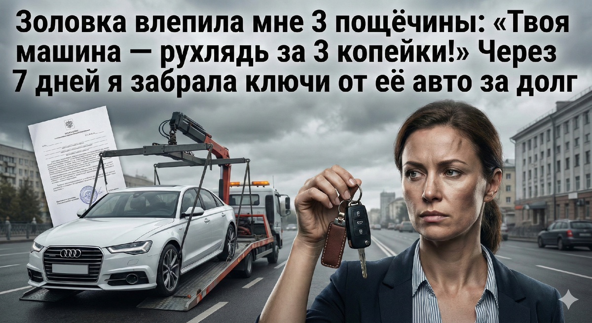 — Оценка произведена, — сухо прервал её пристав. — С учетом износа и срочности взыскания — этого как раз хватит, чтобы закрыть основной долг, проценты за три года и наши издержки. Либо вы сейчас отдаете ключи добровольно, либо мы вызываем эвакуатор, и машина уезжает на штрафстоянку. А вы идете в отдел полиции давать объяснения по факту нанесения телесных повреждений. Ирина Владимировна написала заявление. Свидетель есть.