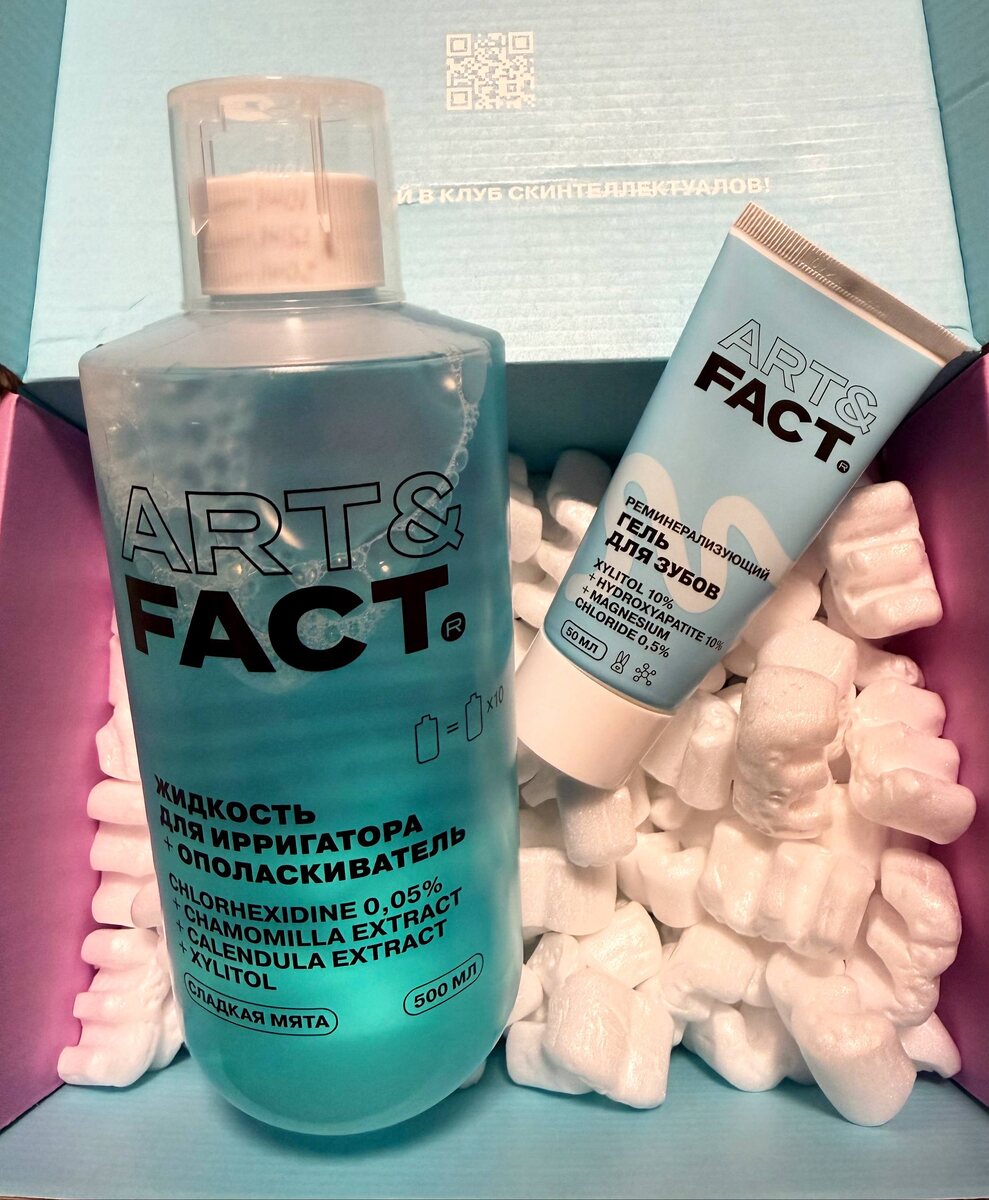 🐚 Сегодня на повестке дня «дуэт» для заботы о полости рта 🦷жидкость для ирригатора + ополаскиватель - это концентрат с очень приятным свежим привкусом, который нужно разбавить водичкой, залить в устройство и использовать по назначению)) здоровье десен, зубов и свежесть) 🦷реминерализующий гель для зубов призван снизить чувствительность зубов, восстановить и защитить эмаль) Разнообразие ассортимента “Art&Fact” не устает меня радовать! Помимо любимчиков для лица, теперь у меня появились фавориты и для улыбки))