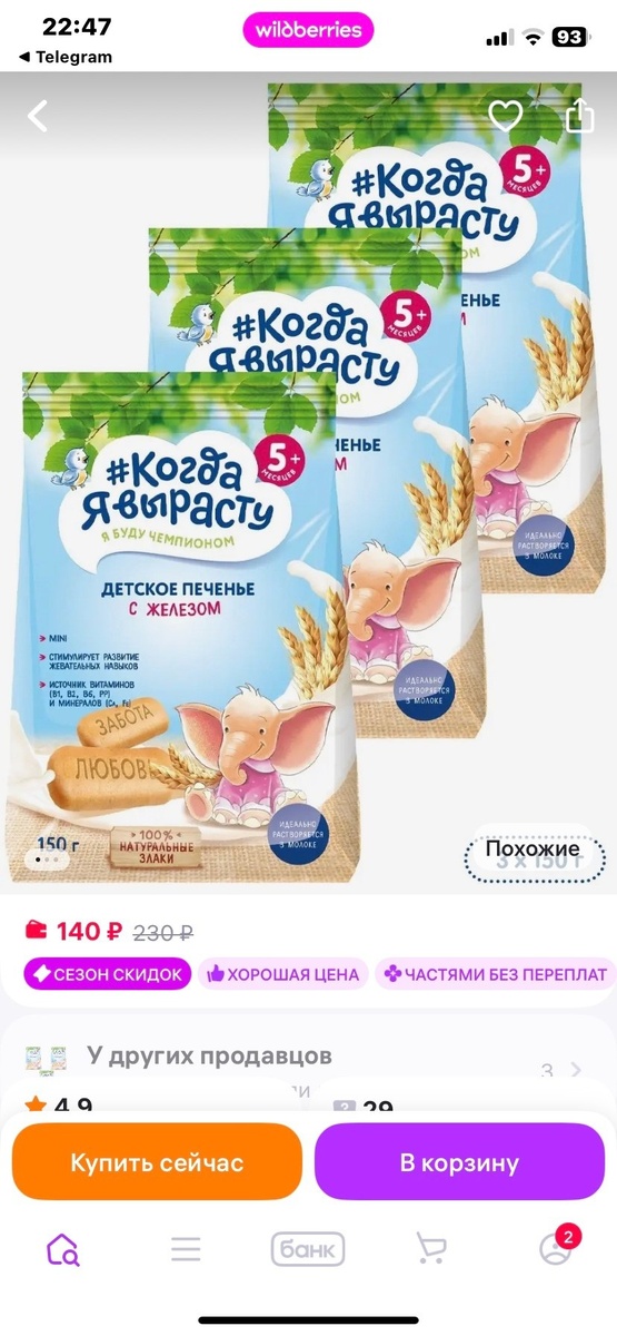 Когда я вырасту Печенье детское с железом, с 5 месяцев, 150 г (3 штуки)