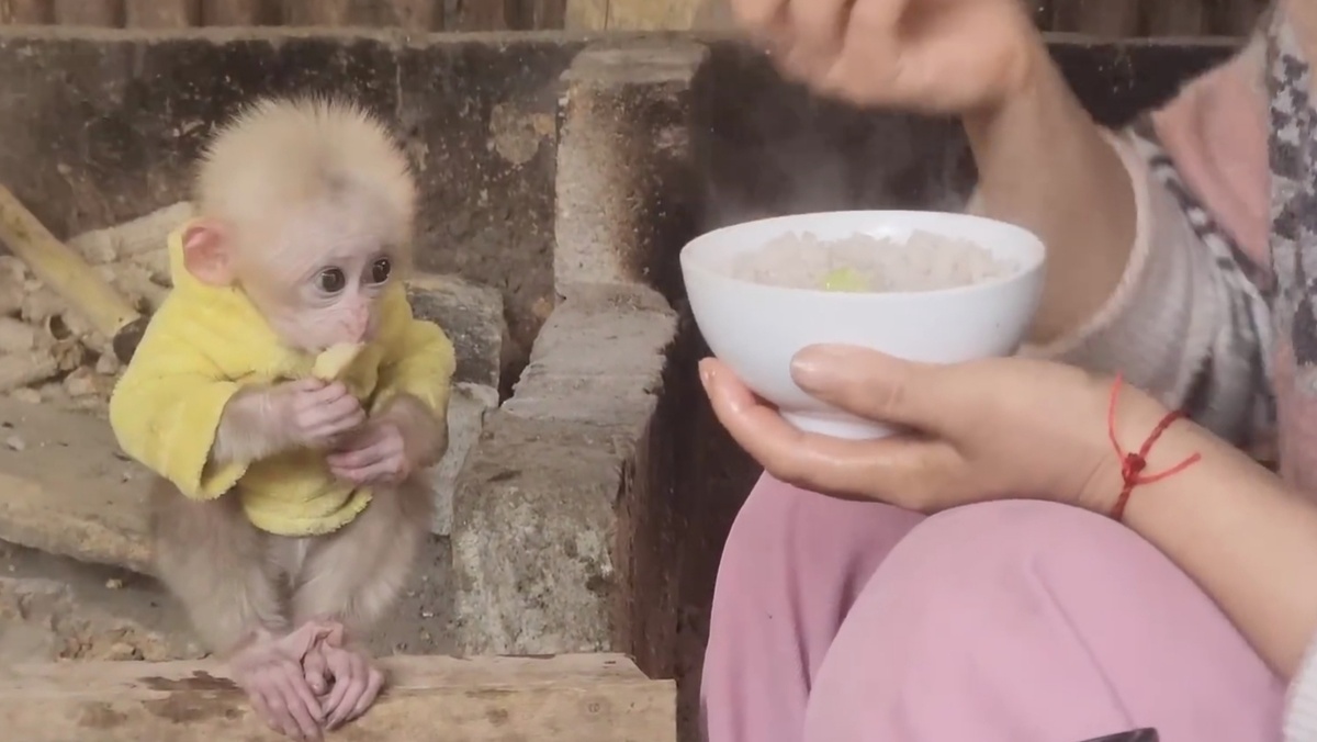 Домик девушки стоял возле самого леса. Она держала большое хозяйство. Во дворе за оградой жили свиньи, в сарае куры, утки. Девушка обрабатывала большой огород. Всё это добро охраняли две собаки. Однажды хозяйка вышла в лес за бамбуком для ограды. Вернулась домой с маленькой крошечной обезьянкой. Отмыла малютку, накормила. С тех пор маленькая обезьянка приобрела свой дом и хозяйку, которая беспокоилась о малютке. Обезьянка так полюбила хозяйку, что не отходила от неё ни на шаг. Вместе они кормили свиней, вместе насыпали зёрна курам и уткам. Вместе ходили за бамбуком в лес. Хозяйка рубила бамбук, а малышка прыгала рядом по веткам, наблюдала за хозяйкой. Малютка после трудового дня очень любила купаться. Шёрстка становилась чистой. Обезьянке было приятно. Часто маленькая обезьянка помогала хозяйке на огороде. Ходила вместе с ней на огород и выбирала лучшую капусту. Хозяйка очень любила тушёную капусту. Полюбила и обезьянка такое блюдо, поэтому с удовольствием ходила на огород, выбирала
