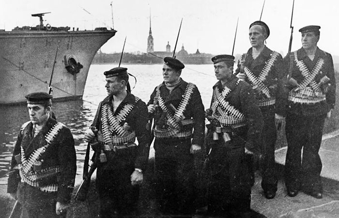 Конечно, не стоит считать, что только моряки додумались до такого простого и действенного способа переноски боеприпасов. «Ленточное украшение» использовалось штурмовыми группами, пехотой во время городских и траншейных боёв, а также расчётами станковых пулемётов. Здесь не было привязки к конкретному роду войск: так уж сложились обстоятельства, что с пулемётными лентами через плечо именно моряки прославились больше всего. Именно в Гражданскую войну моряки чаще всего воевали на суше, причём пулемёты использовались постоянно и на коротких дистанциях. К тому же ради агитации велась фотосъёмка, и опоясанные лентами моряки с завидным постоянством попадали в кадр. В итоге всё это вместе и создало определённый исторический образ. О какой-то традиции речи не шло, это была всего лишь удобная полевая привычка.