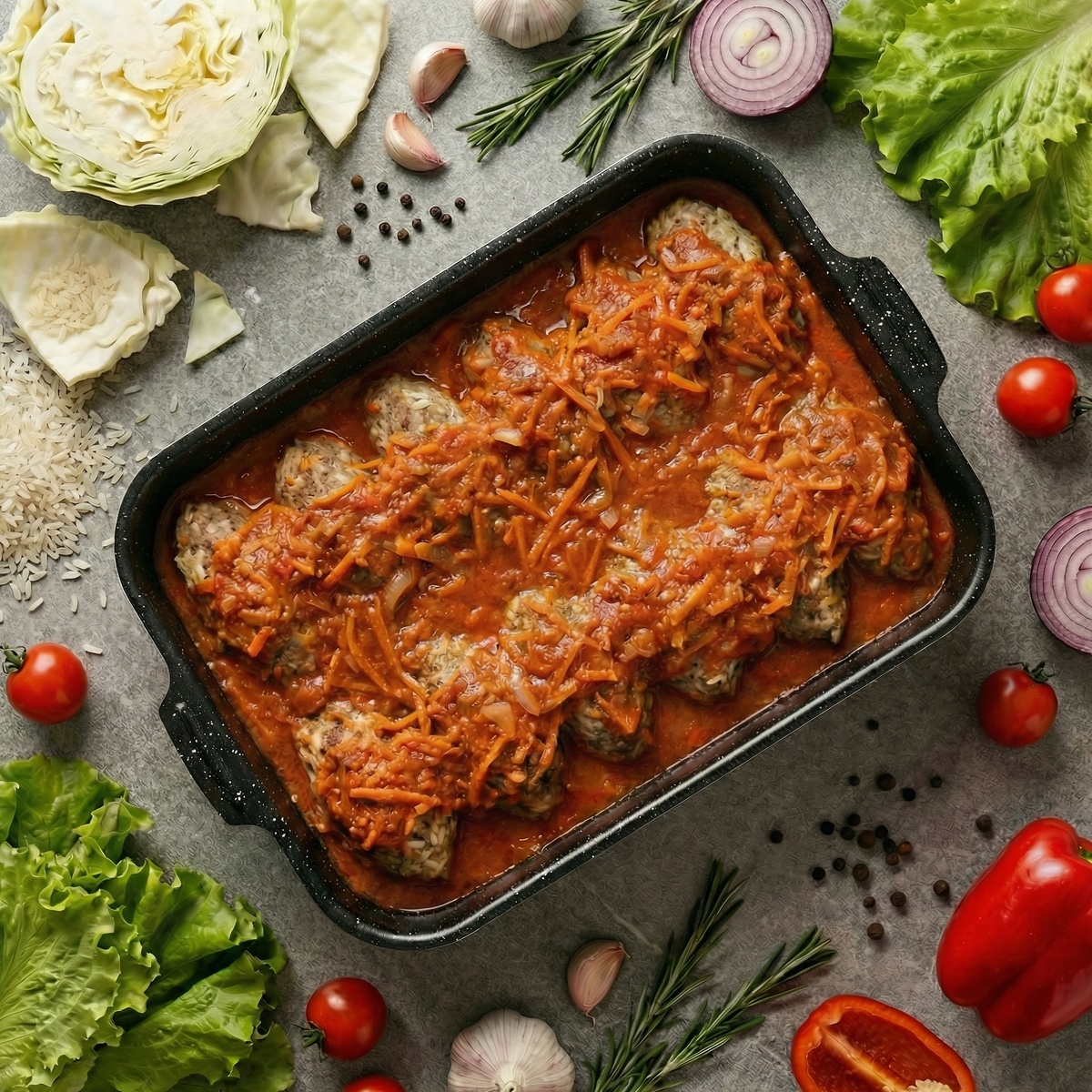 ΠΠ°ΠΏΡΡΡΡ Π½Π°ΡΠ΅Π·Π°Π΅ΠΌ ΡΠΎΠ½ΠΊΠΎΠΉ ΡΠΎΠ»ΠΎΠΌΠΊΠΎΠΉ, ΡΠΌΠ΅ΡΠΈΠ²Π°Π΅ΠΌ Ρ ΡΠΎΡΠ½ΡΠΌ ΡΠ°ΡΡΠ΅ΠΌ ΠΈ ΡΠΈΡΠΎΠΌ, ΡΠΎΡΠΌΡΠ΅ΠΌ ΠΏΡΠΎΠ΄ΠΎΠ»Π³ΠΎΠ²Π°ΡΡΠ΅ Β«ΠΊΠΎΡΠ»Π΅ΡΠΊΠΈΒ» ΠΈ Π·Π°ΠΏΠ΅ΠΊΠ°Π΅ΠΌ ΠΏΠΎΠ΄ ΡΠΌΠ΅ΡΠ°Π½Π½ΠΎ-ΡΠΎΠΌΠ°ΡΠ½ΠΎΠΉ Π·Π°Π»ΠΈΠ²ΠΊΠΎΠΉ. ΠΠΎΠ»ΡΡΠ°Π΅ΡΡΡ ΠΎΡΠ΅Π½Ρ ΡΠΎΡΠ½ΠΎ ΠΈ Π½Π°ΠΌΠ½ΠΎΠ³ΠΎ ΠΏΡΠΎΡΠ΅, ΡΠ΅ΠΌ ΠΊΠ»Π°ΡΡΠΈΡΠ΅ΡΠΊΠΈΠ΅ Π³ΠΎΠ»ΡΠ±ΡΡ. β