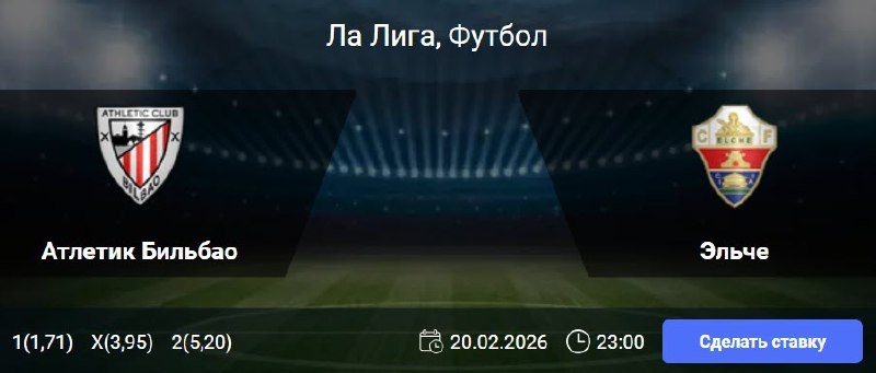 Атлетик Бильбао - Эльче: матч Ла Лиги 25-й тур чемпионата Испании (20/02/26/23:00