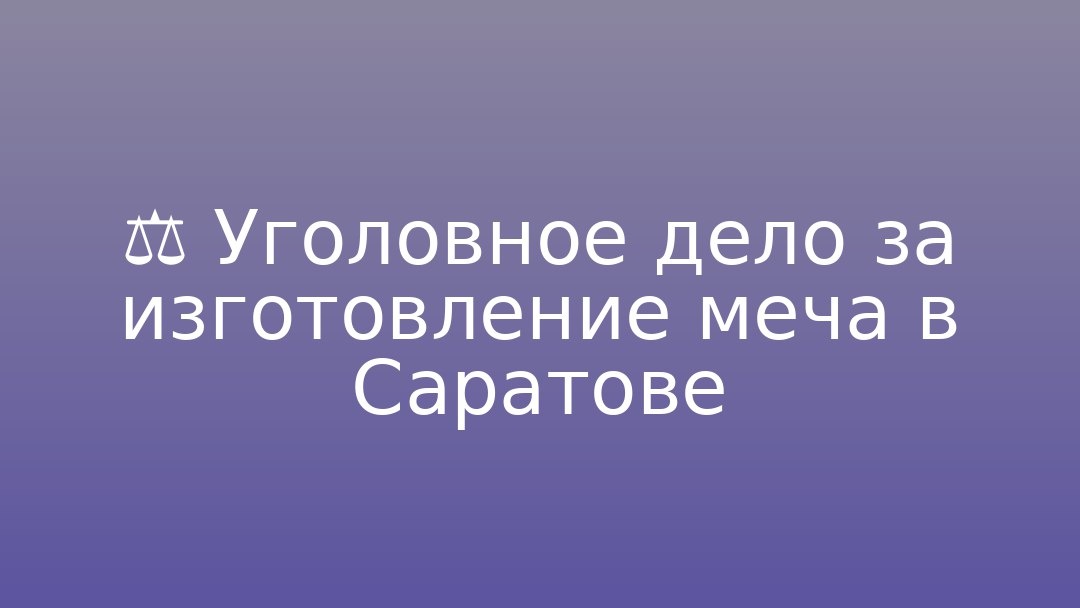 Житель Саратова выковал меч «в спартанском стиле» из детали подвески автомобиля. Экспертиза признала предмет оружием; возбуждено уголовное дело по факту незаконного изготовления оружия.