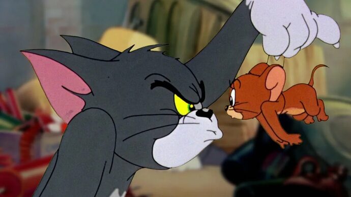Мультипликационная пара Том и Джерри впервые появилась на экранах 20 февраля 1940 года в короткометражном мультфильме «Кот получает пинка» (Puss Gets the Boot). Его создали Уильям Ханна и Джозеф Барбера для кинокомпании Metro-Goldwyn-Mayer (MGM). В первом выпуске кота звали Джаспер, а имя мыши на экране не называлось, но на этапе подготовки к производству её называли Джинксом. После успеха мультфильма имена главных героев решили заменить. Студия объявила конкурс, и победу одержал аниматор Джон Карр, предложивший назвать парочку Томом и Джерри. За это он получил 50 долларов. Название «Том и Джерри» могло быть вдохновлено популярным в США в первой половине XX века зимним напитком, в состав которого входили бренди или ром, яйца, мускатный орех и горячее молоко или вода. Однако есть версия, что имена героев могли быть взяты из книги Пирса Эгана «Жизнь в Лондоне» (1821 год), где рассказывалось про эсквайра Джерри и его друга Тома. Продюсер Фред Куимби был впечатлён первым мультфильмом и п