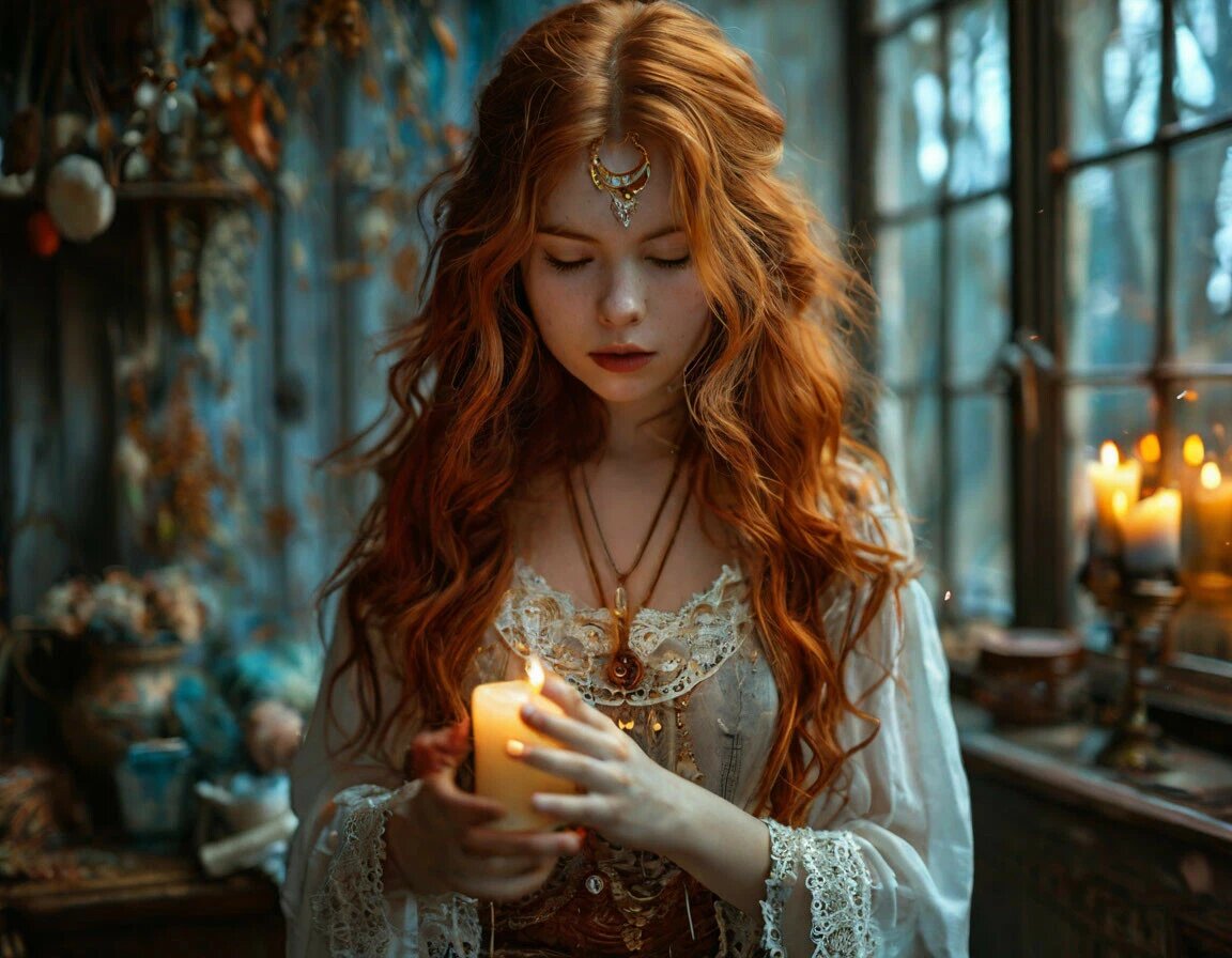 Вечером, когда луна поднялась над лесом, Таисия приготовила всё необходимое. В центре комнаты, на льняной скатерти, она разложила: пучок сушёной полыни - чтобы отпугнуть нечисть, чашу с родниковой водой - для очищения, свечу из пчелиного воска - символ света и защиты, нож с чёрной рукоятью, чтобы перерезать связь с тёмным покровителем, соль - древний оберег от зла.