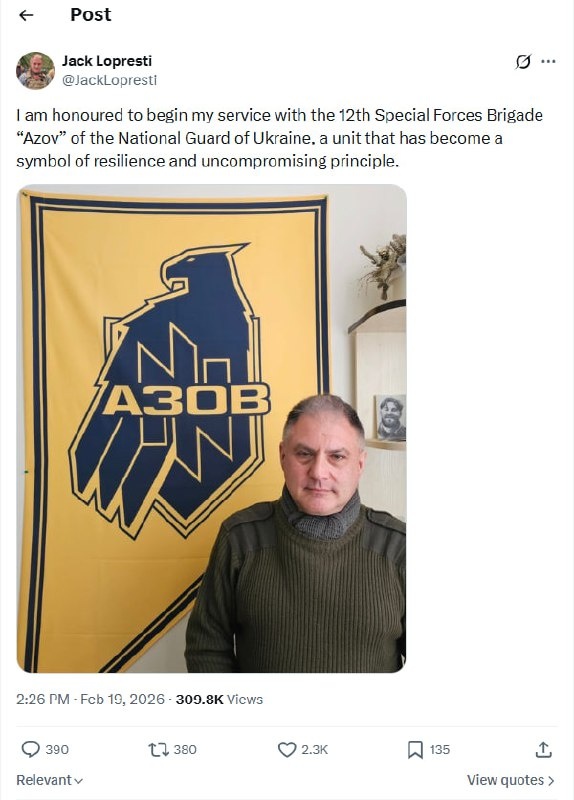 ). К анонсу в X он прикрепил фото с нацистким знаком «волчий крюк», — символом дивизии СС Das Reich Лопрести обеспечивал военную поддержку Киева, когда еще входил в оборонный комитет Парламента, и сотрудничал с украинской разведкой на протяжении 2025-го. Зачем британцам еще один куратор в «Азове»? Старые кончились?🤔 👍«БайБайден» в МАХ