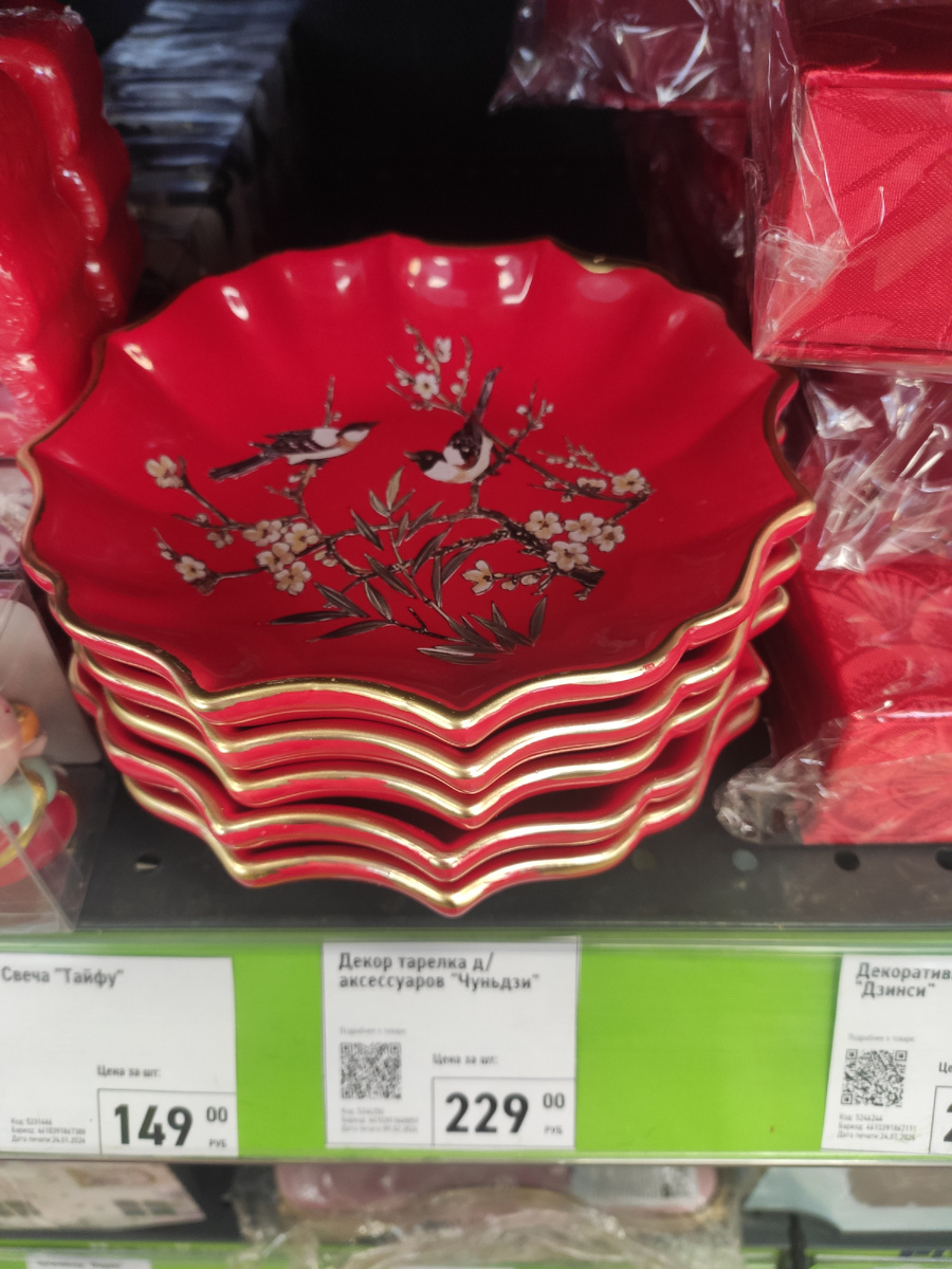 Тарелочки Чуньдзи красного цвета с птицами 229 рублей.