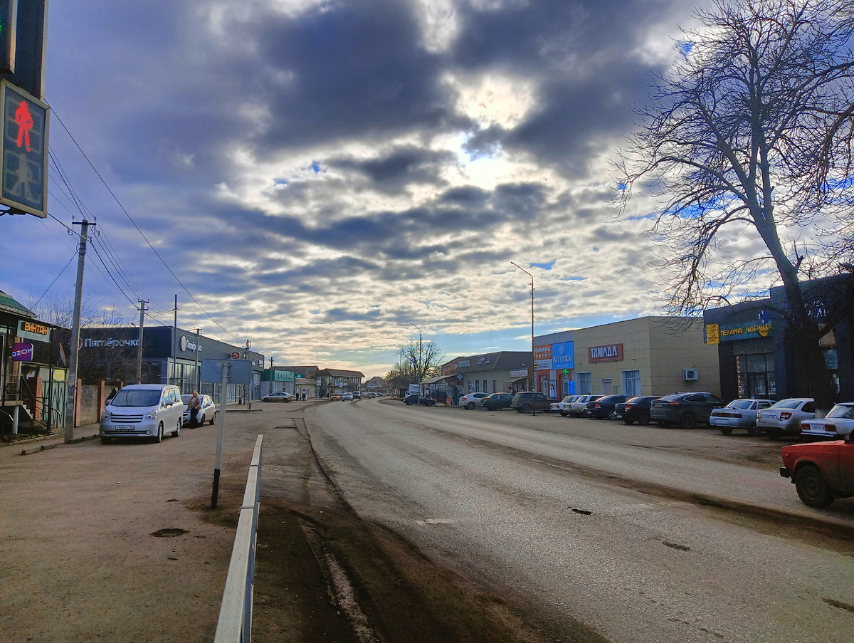 Пустынная дорога, ни одной машины, словно апокалипсис спустился на нашу станицу, но через несколько минут, к нашему удивлению эта картина сменилась на другую, более светлую, солнечную и яркую.