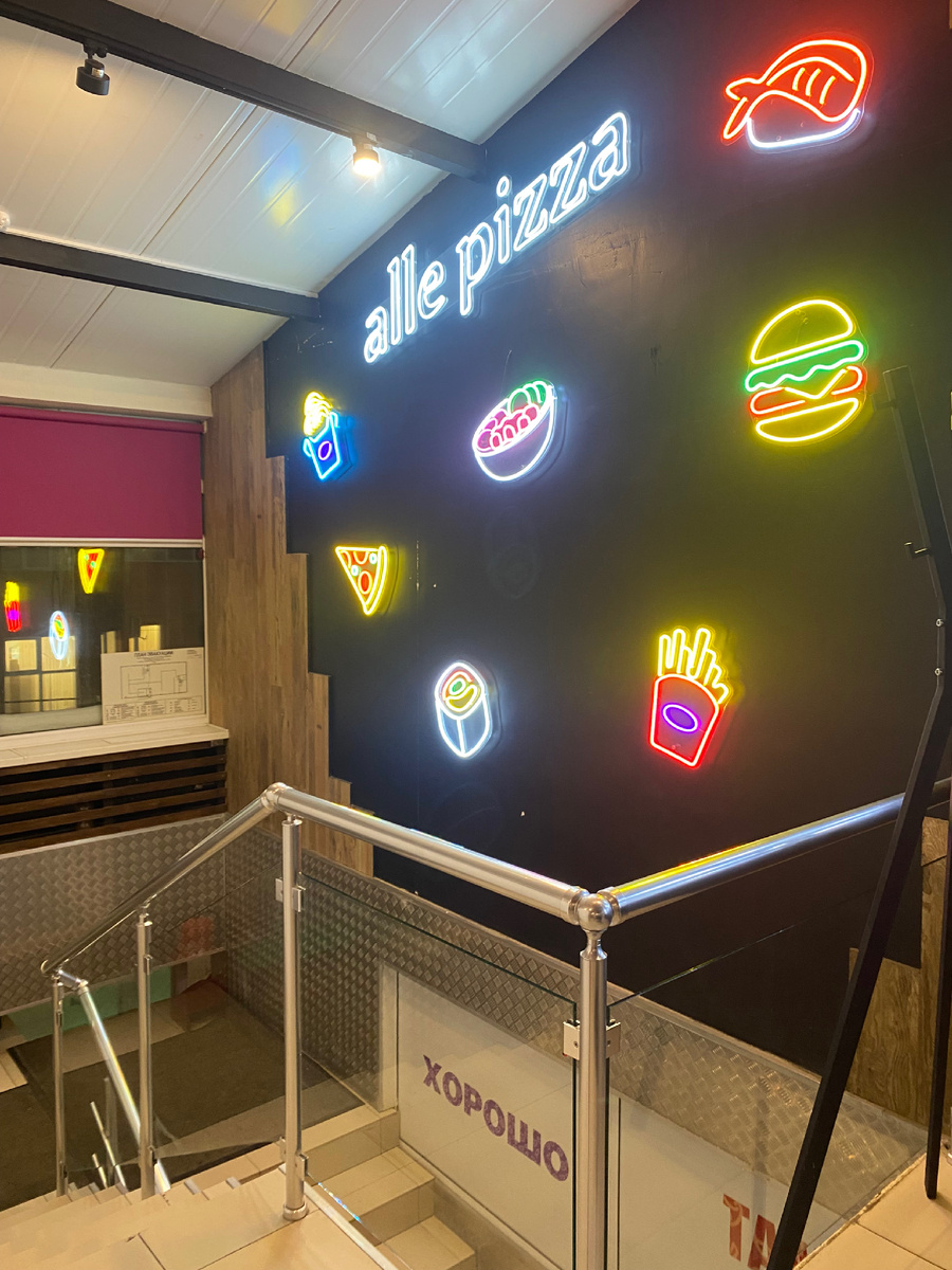 Меню разнообразно. Акцент сделан на пиццу, суши, роллы и другие фастфуды.