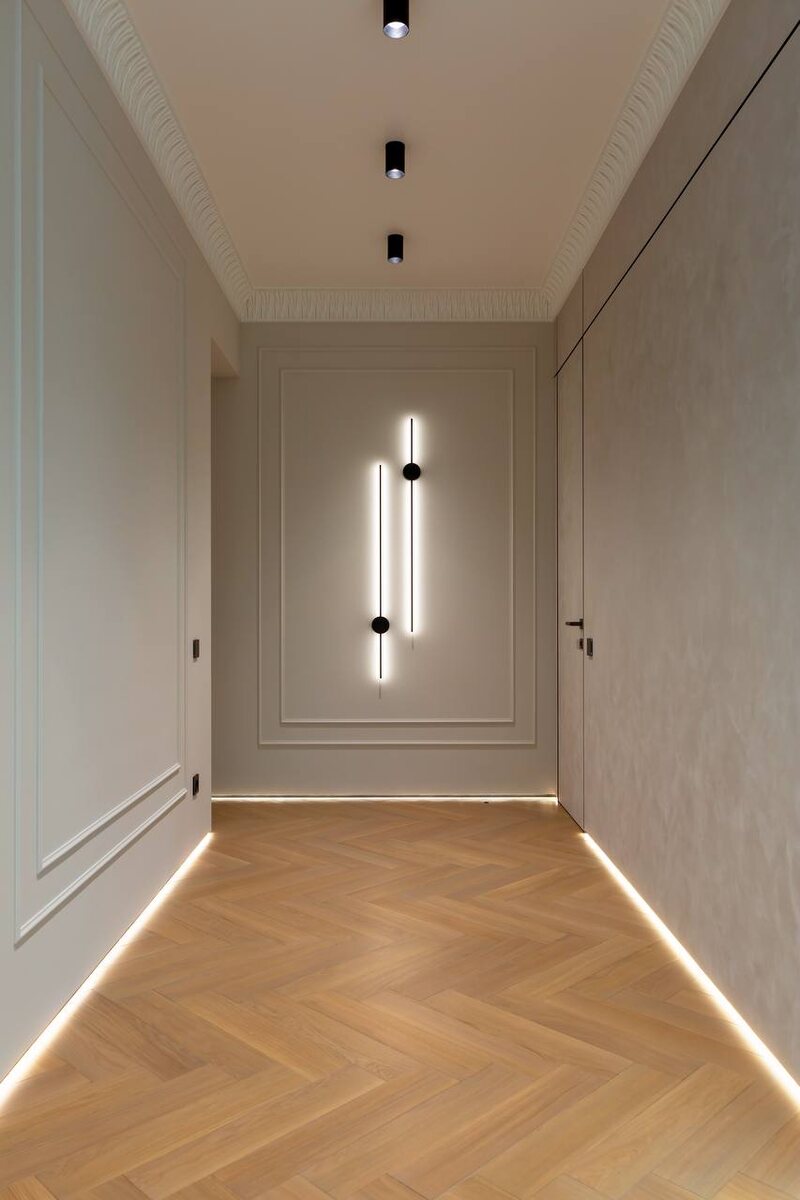 Сдержанная, интеллигентная палитра подчёркивает спокойствие интерьера и его тактильную глубину.