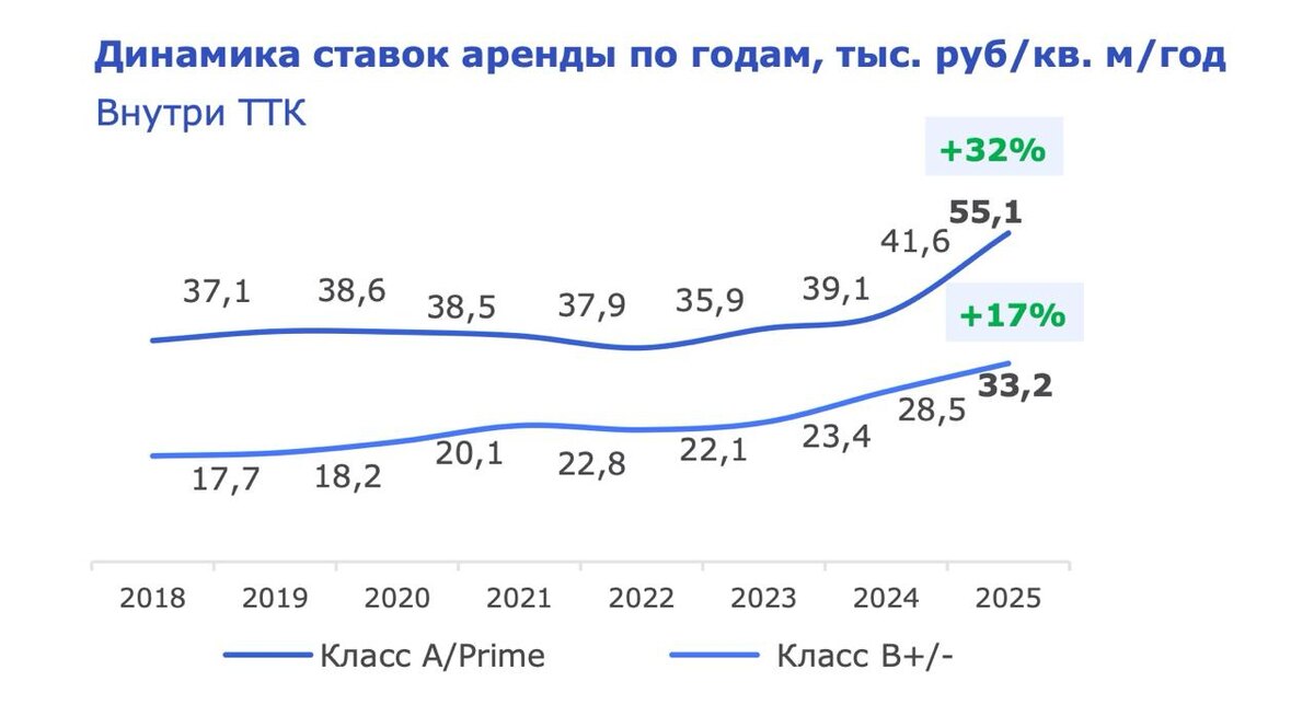 Консалтинговая компания Nikoliers подвела итоги 2025 года на рынке офисной недвижимости. В динамике год к году зафиксирован опережающий рост ставок аренды в Москве: +32% для класса А/Prime, +17% для класса В (в пределах Третьего транспортного кольца). Внутри МКАД ставки также растут, но менее активно (+15% для класса А/Prime, +8% для класса В). Согласно прогнозам Nikoliers, положительная динамика сохранится и в 2026 году. Подготовили для вас предложение в офисном сегменте, на первом этапе сбор инвестиций будет доступен только Клубу Liberty.